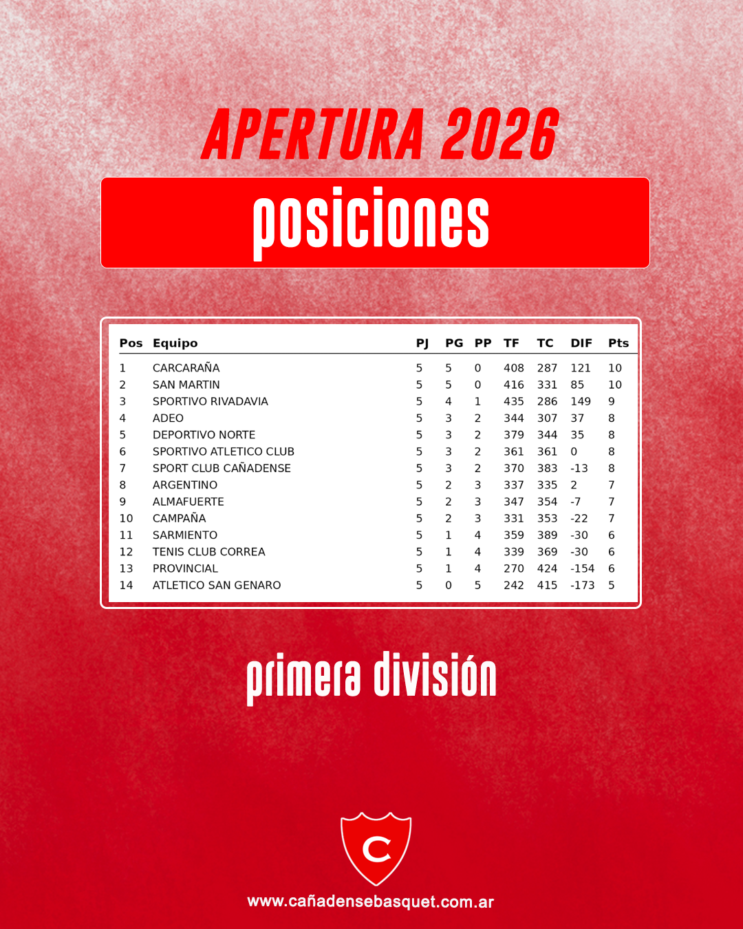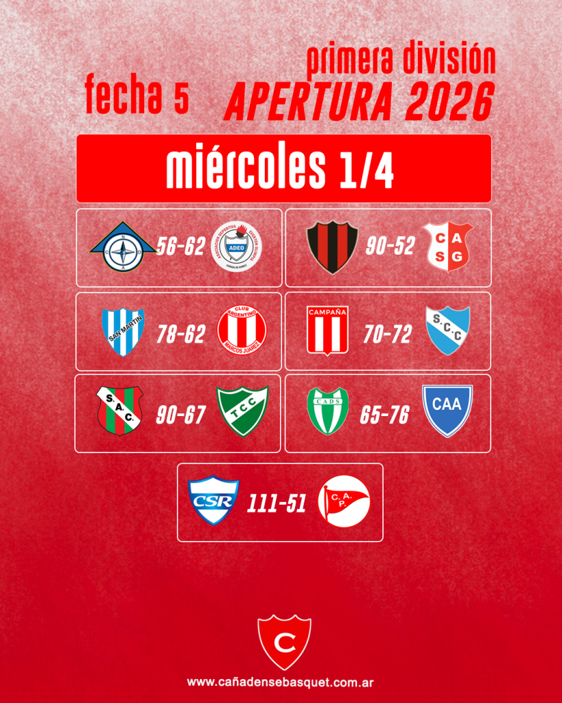 Se disputó la quinta fecha del Torneo Apertura de Primera División de la Asociación Cañadense de Básquetbol, jornada que volvió a ratificar el gran presente de los equipos que lideran…