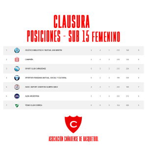 POSICIONES CAÑADENSE SUB 15 FEMENINO