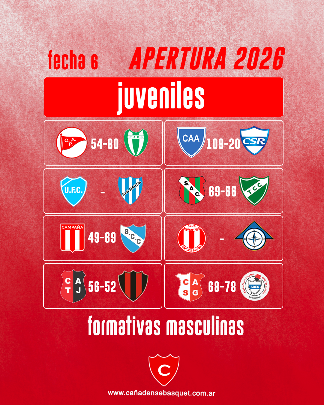 En los resultados, Sportivo de Las Parejas se quedó con uno de los duelos más parejos de la jornada al superar a Tenis Club Correa por 69 a 66, mientras que Sport Club Cañadense logró una sólida victoria ante Campaña por 69 a 49.