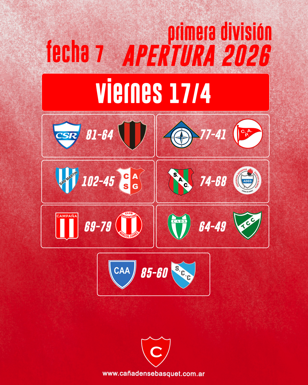 Se disputó de manera completa la séptima fecha del Torneo Apertura de Primera División, con una jornada que tuvo resultados amplios en varios escenarios. San Martín de Marcos Juárez se mantiene como líder invicto, mientras que Sportivo Rivadavia logró un triunfo destacado ante Carcarañá, que perdió su condición de invicto.