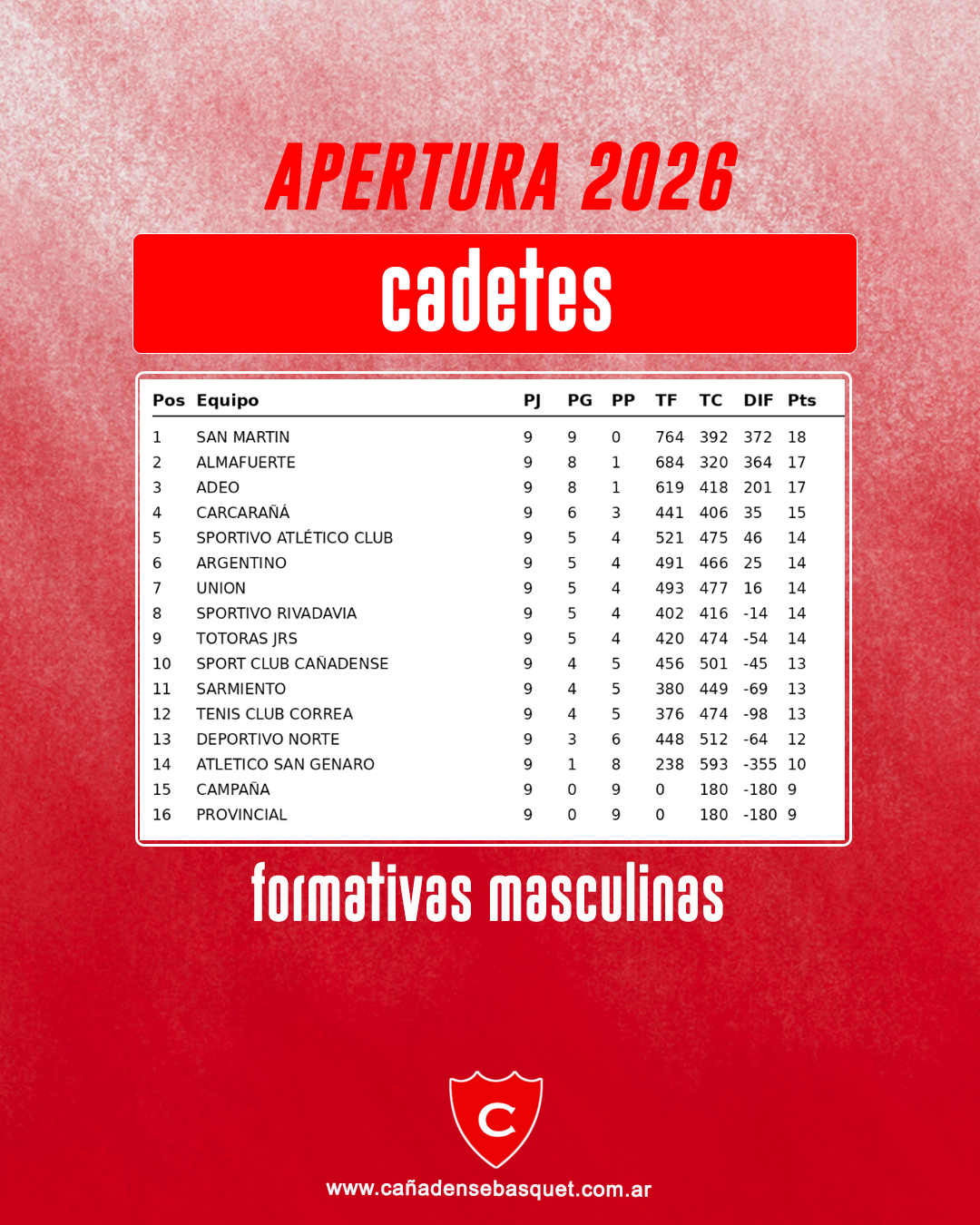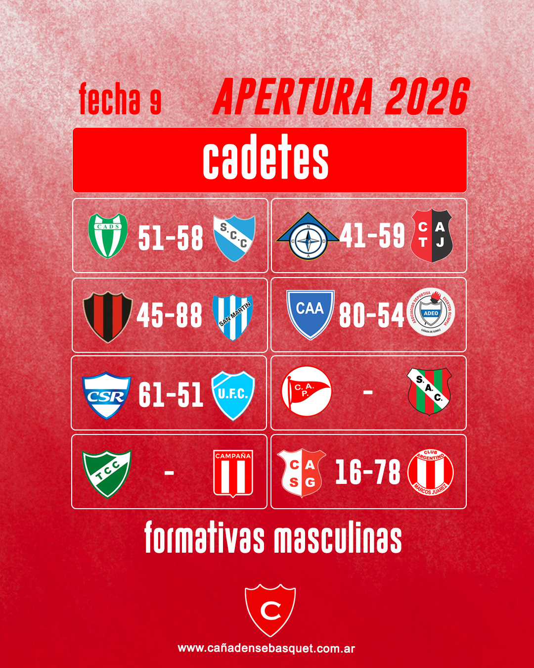 La fecha 9 del Apertura 2026 en categoría Cadetes de la Cañadense dejó un panorama cada vez más claro en la parte alta, con resultados que marcaron diferencias importantes.
